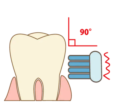 歯ブラシの毛先を歯の面にピッタリと垂直に当てた状態で、細かく小刻みに動かします。大きく動かしすぎると、汚れを溜めこんでしまうので気をつけましょう。