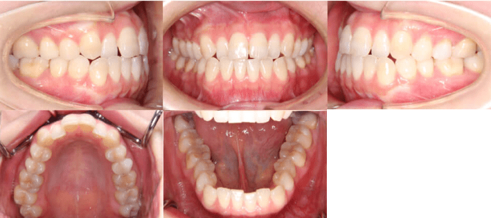 - 診断:前歯部交叉咬合を伴う叢生